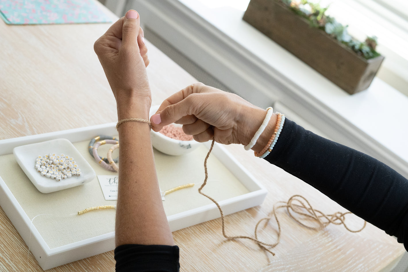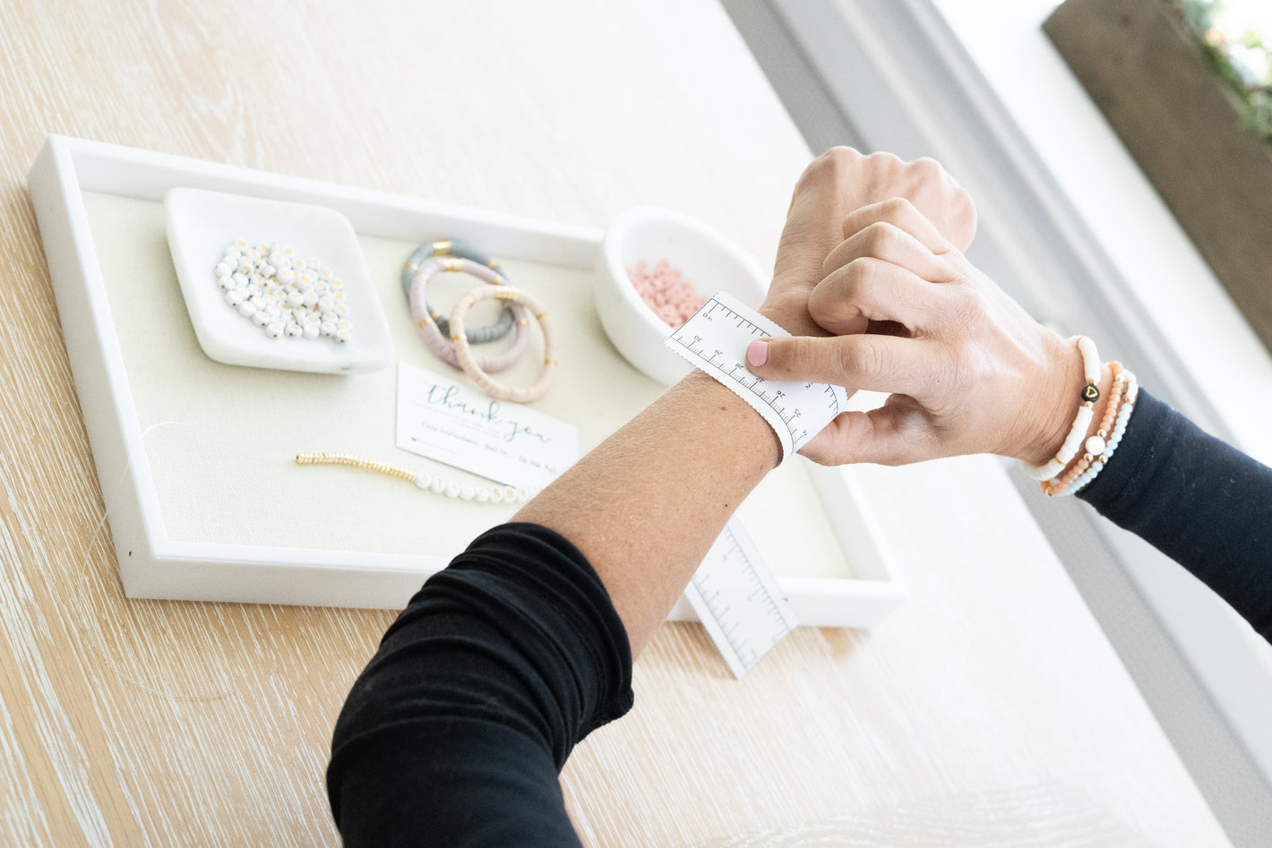 Stacks by Steph bracelets are strung on elastic cord to add a slight stretch. This makes it easy to roll your bracelet on and off your wrist. Though stretchy, it is still very important to order the correct size for your wrist so you can get the best out of your handmade bracelets now and forever. Sizing your wrist is a breeze with the right tools and know-how! Follow the simple steps below to determine your bracelet size for use when purchasing my jewelry.