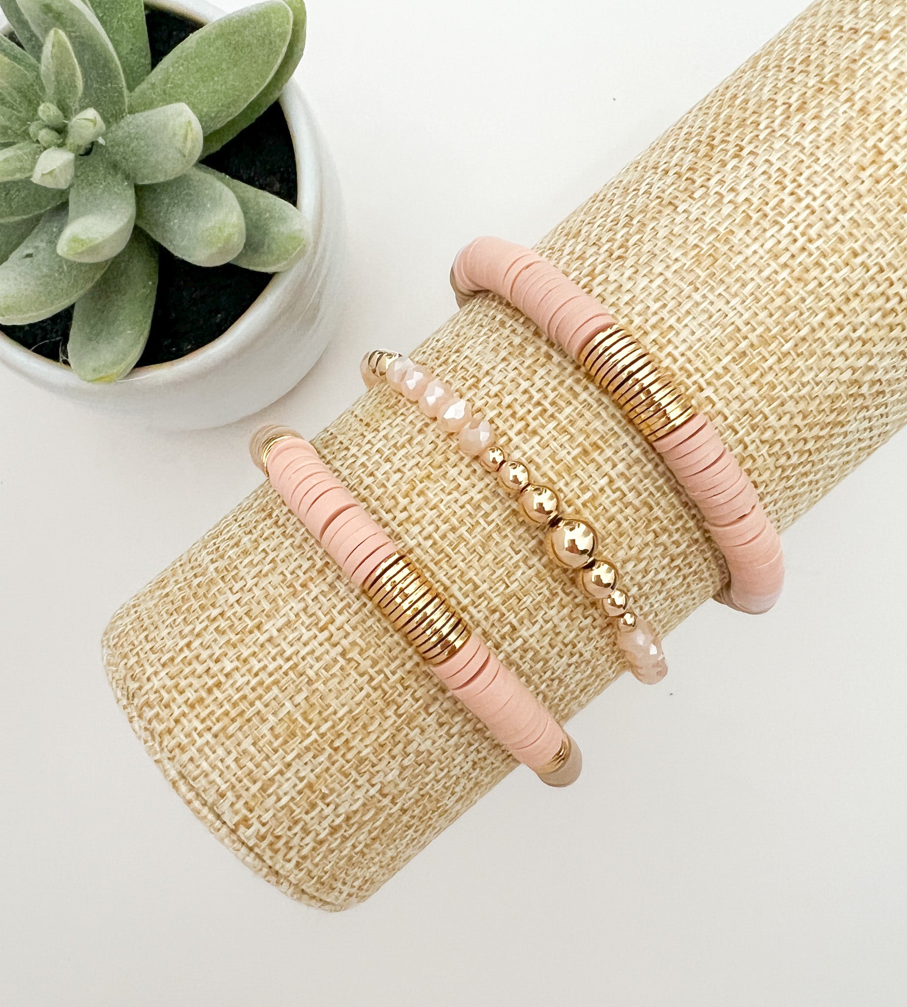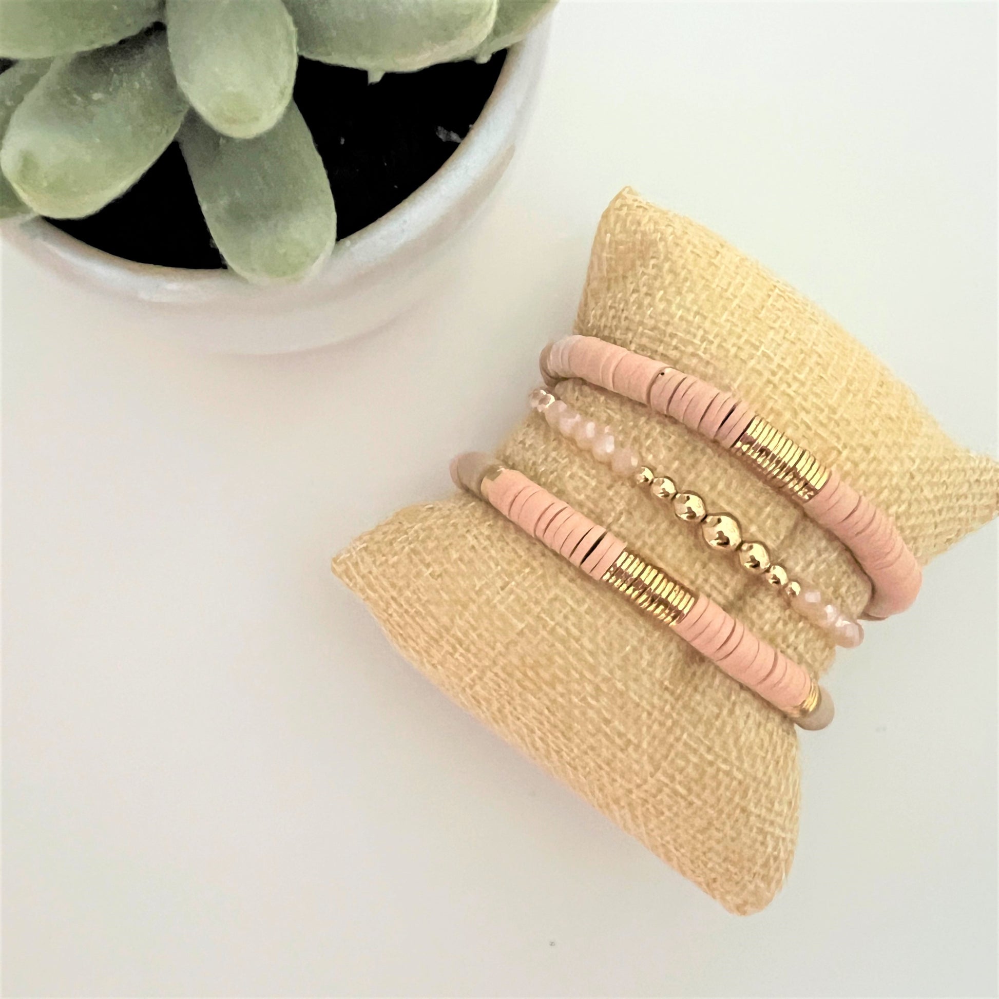 These handmade bracelets have neutral hues and natural gemstones, with a pop of gold heishi beads and 14K gold-filled beads, creating an elegant, timeless look for the modern fashionista! Get ready to make a chic statement with this amazing opportunity to showcase your style!