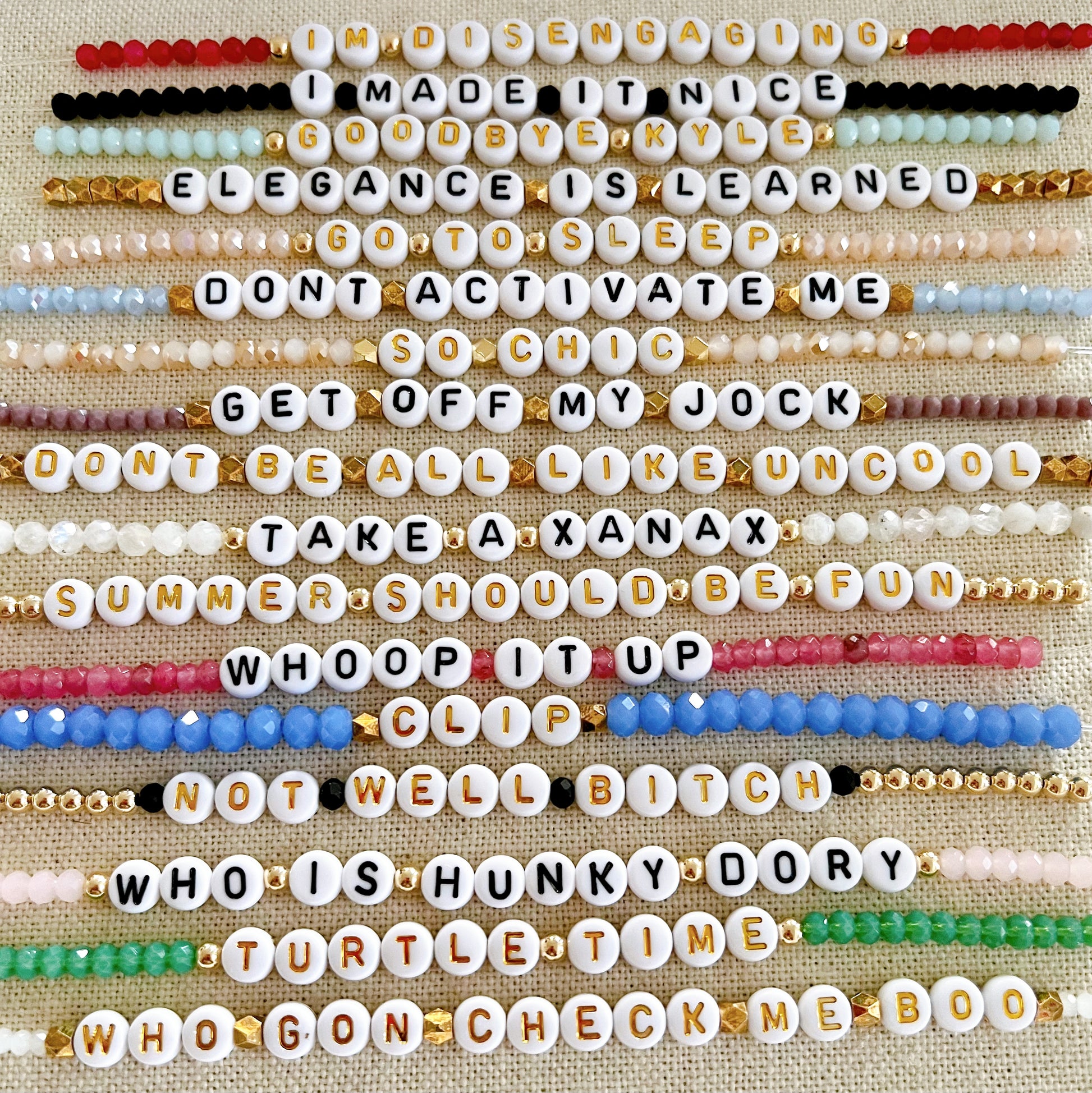 Who doesn’t love Bravo TV?! Take your favorite saying and wear it with you all day! These bracelets are great to add to your own personal stack and also great gift ideas for your Bravo-obsessed friends and family. Bracelets come as is. If your favorite saying is missing, please email me and I'll be happy to turn your favorite quote into your favorite bracelet. Bring your Bravo TV style wherever you go! Whether you want to add to your own stack or give the perfect gift to the Bravoholics in your life, these bracelets will be sure to turn heads. And if your favorite saying isn't available, just drop me a line and I'll turn it into a bracelet! *Beads as shown, personalization not available.